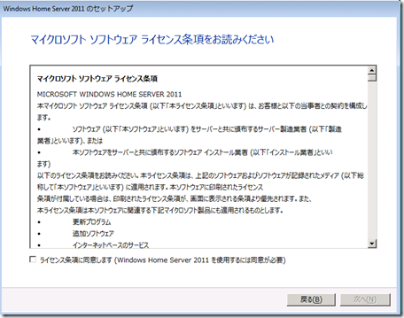 ライセンス条項に同意しますにチェックを付けて「次へ」ボタンをおす