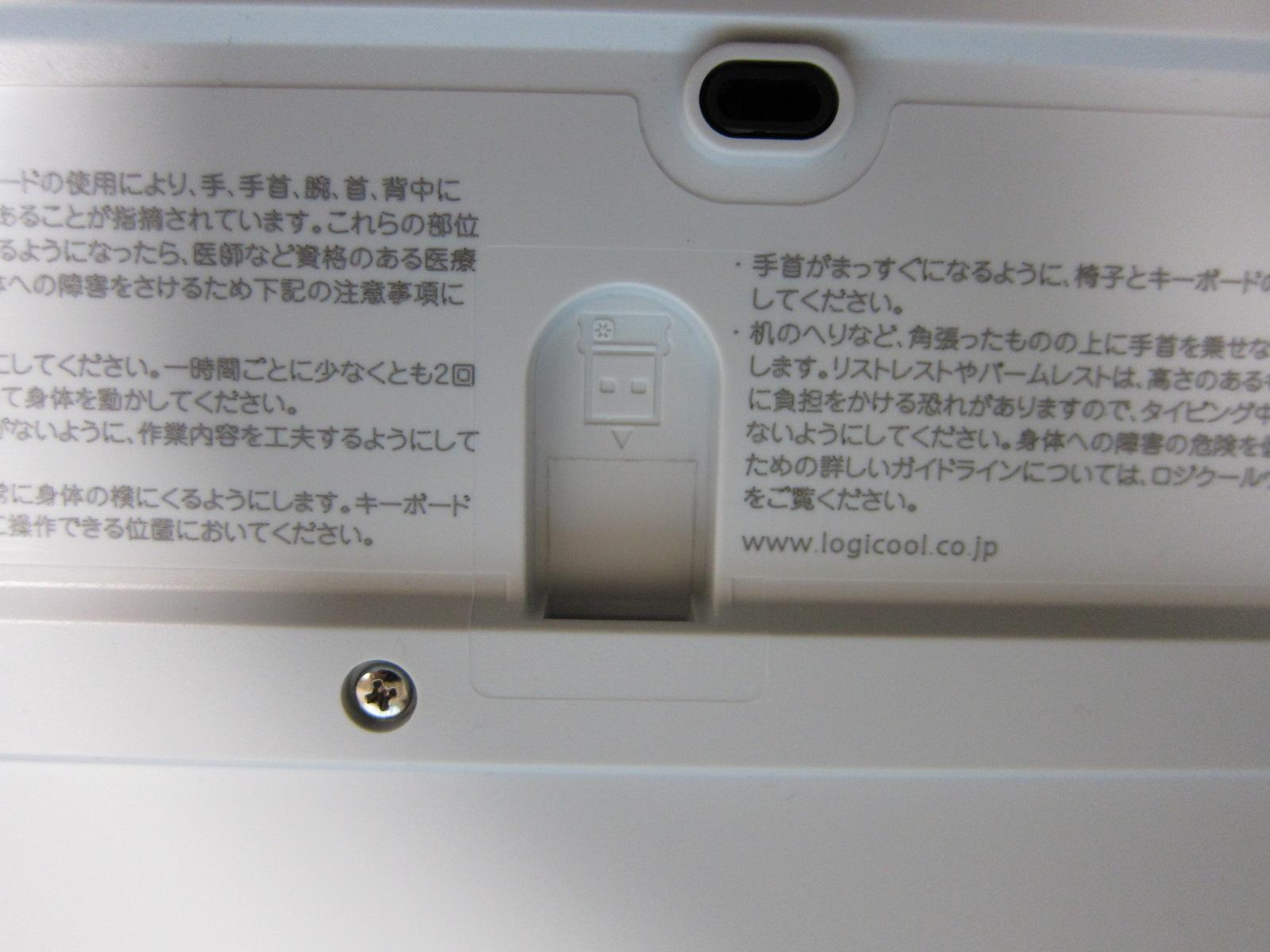 裏面を見ると、USBレシーバーを挿しておける場所があります。小さいレシーバーなので無くさないように挿しておけるのはいいですね。