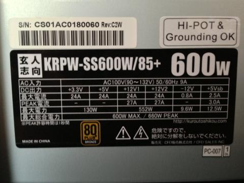 GTX660などのミドルクラスのグラボ+i7の組み合わせでも余裕の容量のこの電源!