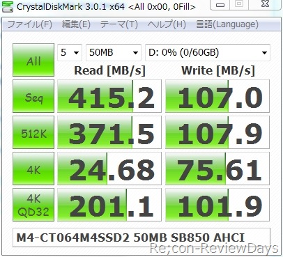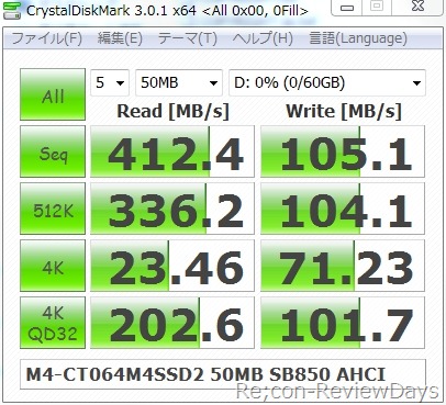 今回はCrystal Disk Mark 3.01 x64、CrystalMark2004R3 0.9.126.452、ATTO Disk Benchmark v2.46を使用して以下環境で検証しています。