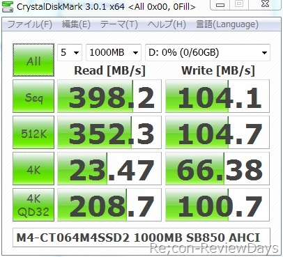今回検証したSSDは容量が64GBのCT064M4SSD2でしたので書き込み速度に不満がありましたが、安定度の良さに128GB板が欲しいと欲しいと思ったり。