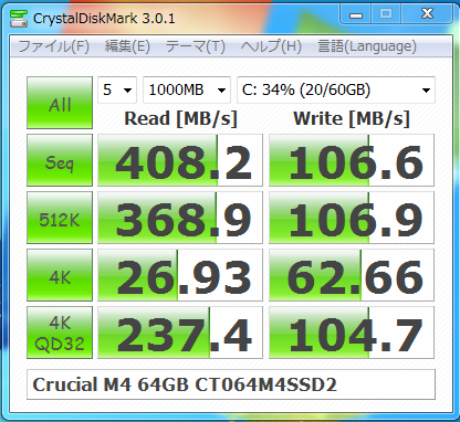 PCを組むにあたって起動ドライブにSSD Crucial M4 64GBを入れました。