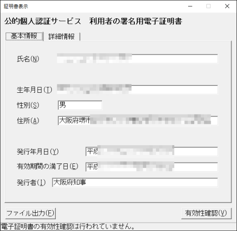 最後に実際に住基カードの電子証明書を読み込んで有効期限を確認します。
