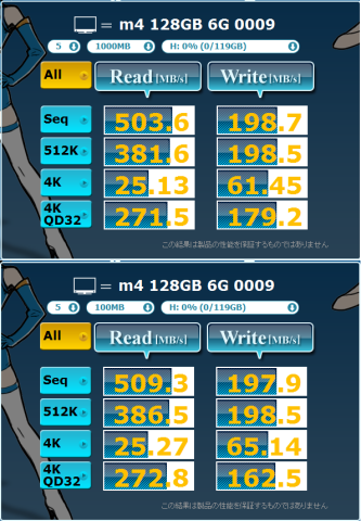 OSを入れても、CDMでは落ちてませんし、ファームアップで100MB/sもアップするなら、美味しいですw