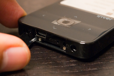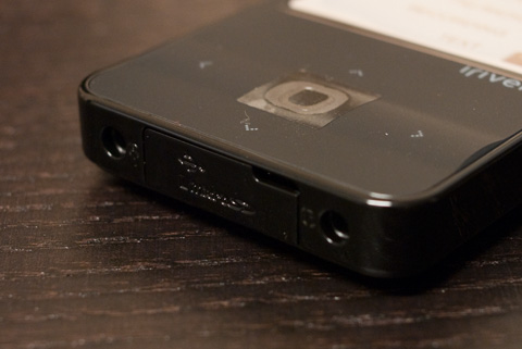 写真だと若干見辛いですが、向かって左から"外部入力端子"、"端子カバー"、"イヤホン端子"が並んでいます。