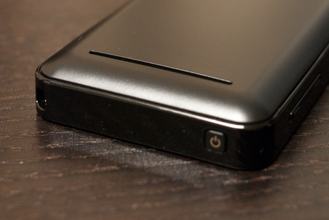 向かって右側に"ストラップホール"、左側に"電源"が配置されています。