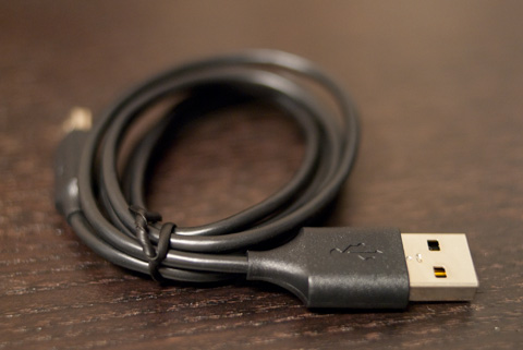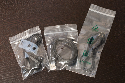 左側から"イヤホン"、"USBケーブル"、"ライン入力ケーブル"。