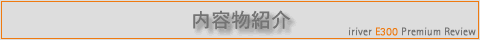 この度は"iriver E300"プレミアムレビューの機会を賜りまして、誠にありがとうございます。