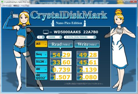 333GBプラッタで7200rpmのベンチマークにしては、かなり疲労しているであろう結果だ。