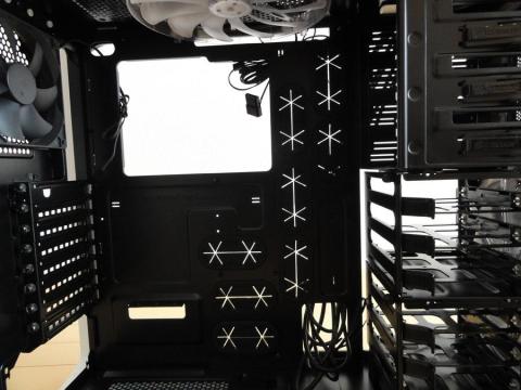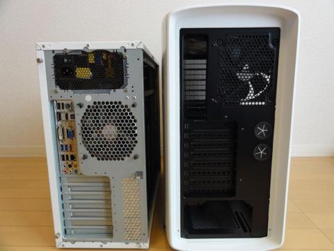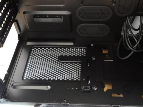 あと、CPUクーラーの換装のため、マザーボード位置に穴がありました。