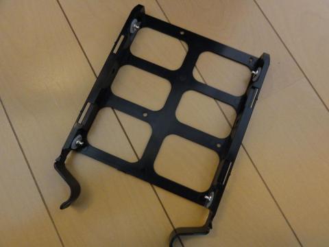 ツールレス仕様の3.5インチのマウンタ。底を少し反らせて4つの軸を挟み止め。
