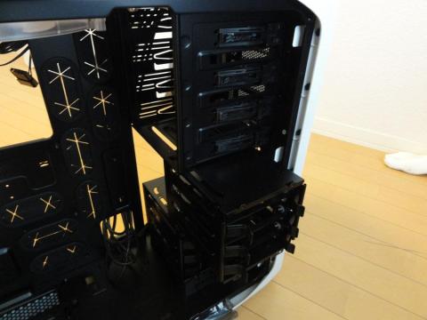 下段の3.5HDDのケージなんて、取り外して古いHDDの置き場所になってたり。。