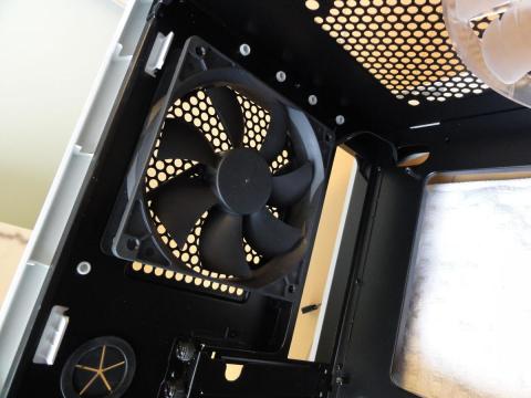 20cmの巨大なファン(白LED付)が覗く。