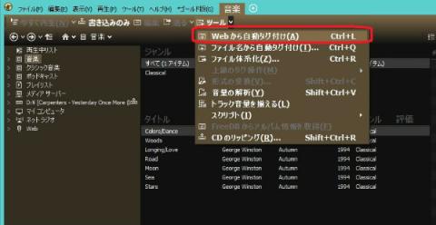 ネットからタグ情報の取得を忘れてました、「ツール」ボタンを押し、一番上の「Webから自動タグ付け(A)」をクリックします。
