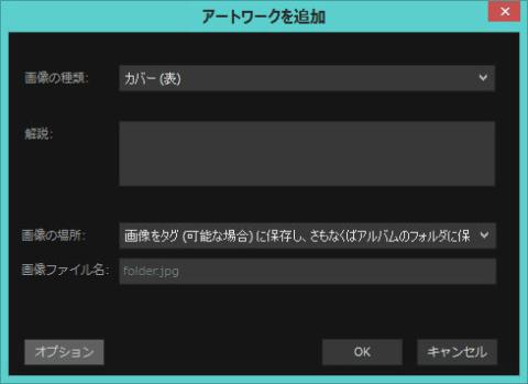 先程チェックを入れたので、CDケースの写真(アートワーク)を追加しますので、「OK」ボタンをクリックします。