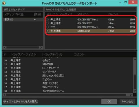 リッピング時には音楽CDの情報がFreeDB上に無かったり、複数の選択肢が有ったり、まるっきり間違えたりします。