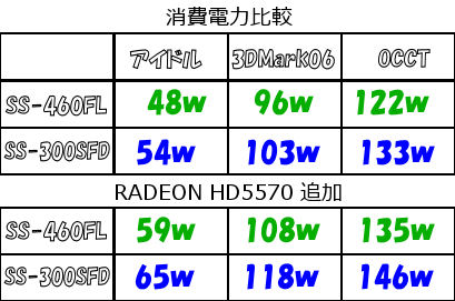アイドルで-6w、 3DMark06 CPU-TESTで-10w、OCCT4.3.2で、-11w