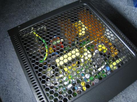 ・廃熱のためのハニカム構造の通気口が多く設けられています、見える内部のヒートシンクは大き目かな。