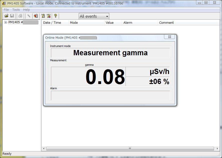 汚染されるレベルの場合は、上記「ラジウム線源での動作確認」画像2のように「CONTAMINATED(汚染されます)」と表示される。