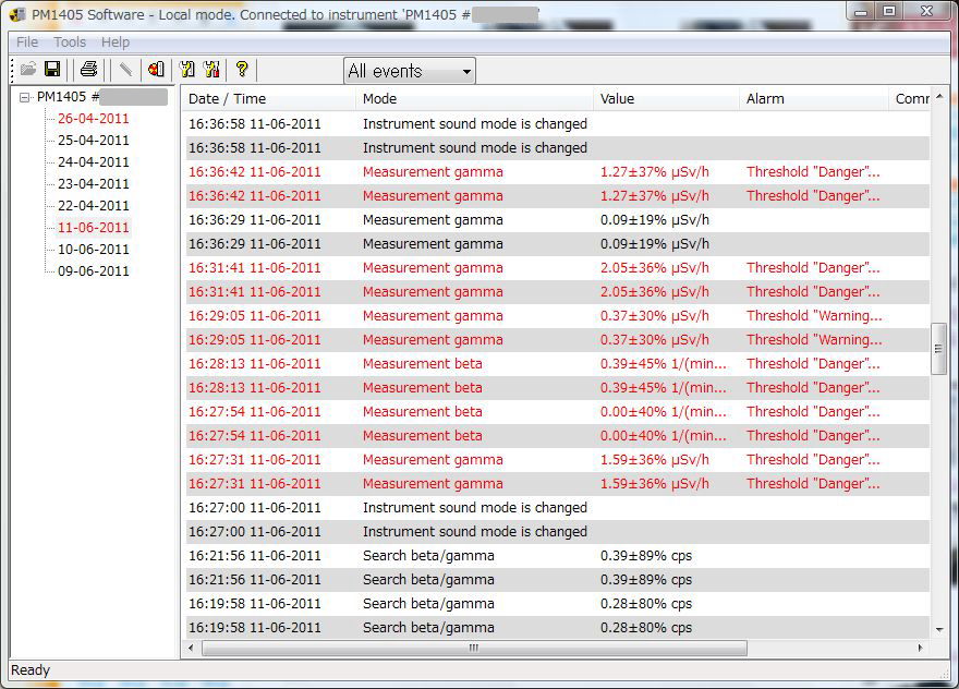 端末自体は、ボタン操作で「現在の線量」「累計線量」を簡単に切り替えが出来るので便利です(普通、線量計はみんなそうなのかも・・)