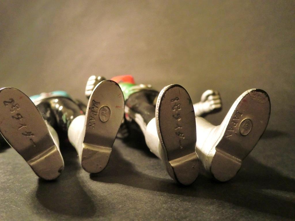 1998年の刻印の昭和ライダーソフビ(下の画像では中央の2体)も見つけてはコツコツ集めております。