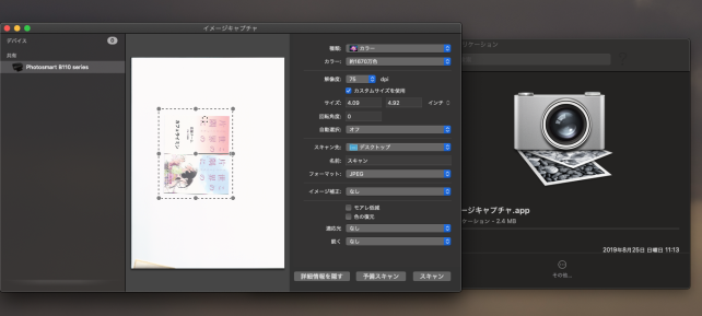 新しい64ビットOSに置いて HP製のスキャンアプリは作動しないので Appleのイメージキャプチャアプリとつなぐことにします