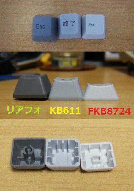 東プレREALFORCE、今回のFMV-KB611、ネタ枠のFKB8754(≒FKB8724)のESCキーを使って比較してみました。