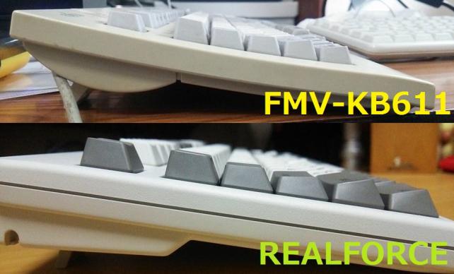 のようになります。(Cherry/中華軸などの)ツクモやソフマップでよく見るメカニカルKBからこのFMV-KB611に乗り換えるととにかく軽くてビックリすると思います。