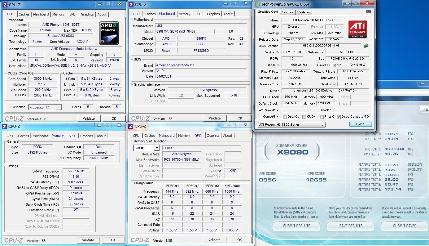 3DMark Score:X9090 (1090T:X12712)