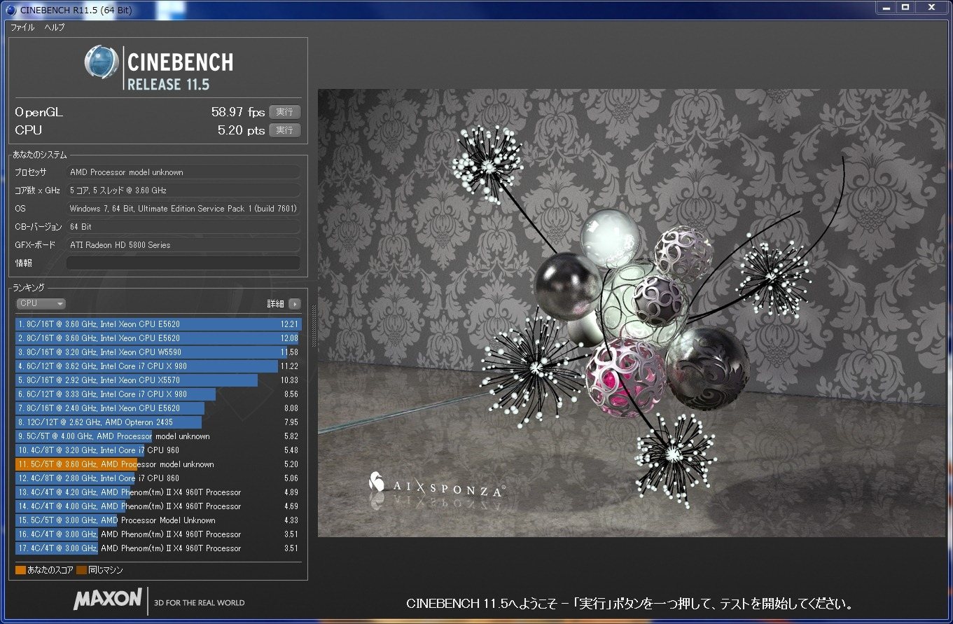 OpenGL:58.97 fps (1090T:61.90)