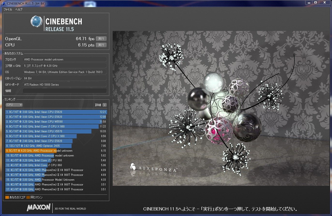 OpenGL:64.71 fps (1090T:61.90)