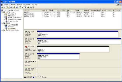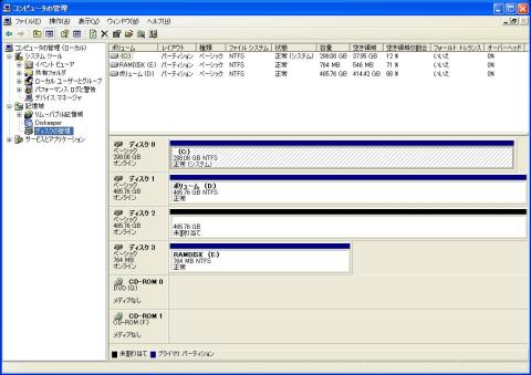 コントロールパネルの「ディスクの管理」を開いてみたり