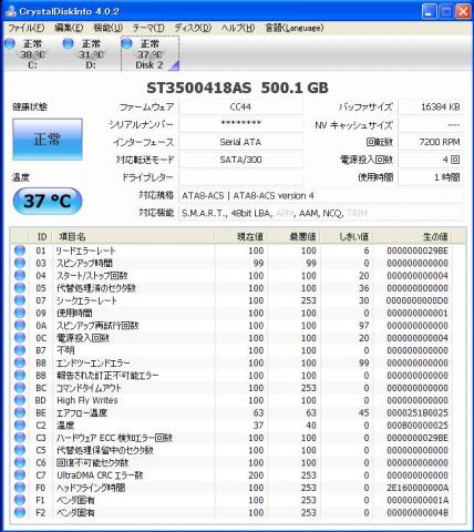 CrystalDiskInfoでS.M.A.R.T.情報でも