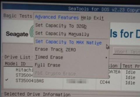 開くと「Set Capacity To 32Gb」,「Set Capacity To Manually」,「Set Capacity To MAX Native」,「Erace Track ZERO」,「Timed Erace」,「Full Erace」,「FDE Crypto Erase」とあります。