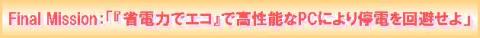 そこで君の任務だが、、「インテル(R) Core(TM) i5-2500T プロセッサー」 と「インテル(R) SSD 320 120GB」を用いて、「省電力でエコ」でしかも高性能なPCを造りあげ、電力の消費を抑えることでこの地域の停電の可能性を根絶することにある。例によって君もしくは君のパーツが消耗、あるいは損傷しても当局は一切関知 しないからそのつもりで。