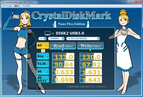 シングルモードのUSB3.0接続ではSATA接続時とほぼ同じ。