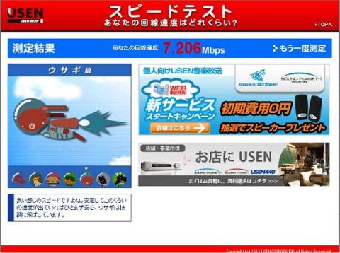 すぐ近くにあるパソコンBから内蔵無線LANアダプタでこの無線LANアクセスポイントに接続してインターネットにアクセスすることで、次のようにインターネット接続速度が出ている: