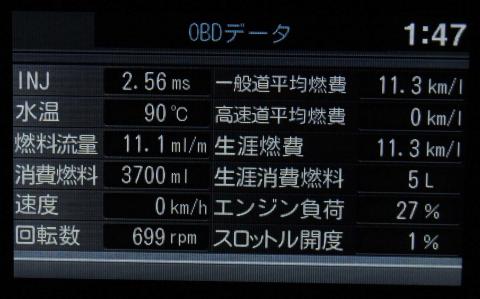 もしこれが、自動でローテーションされることがなく固定でき、また必要なメーターだけを選択して表示できるようなモードが実装され、更にこれらのログ情報を保存できるようになれば使い勝手は飛躍的に向上し、アップグレード用のアフターパーツメーカーが販売するようなODB経由でECU情報を表示するような機器を駆逐できるだけのポテンシャルを秘めていると感じた。