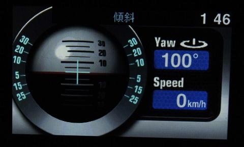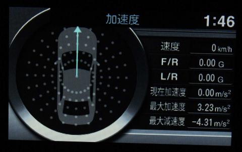 Gメーターとヨーレートの表示は、見ていてちょっと楽しいというだけではなく、Gやヨーはドライバー自身はドライブしている中であまり大きく感じるわけではないものの、同乗者がいる場合に、同乗者はドライバーとは違い、ステアリングや加減速を予測するのが難しく、ドライバーよりもGやヨーを大きく感じるため、同乗者に快適なドライブを提供すべく、これらを小さく抑える自主ドライビングレッスンに使えるのではないだろうか?