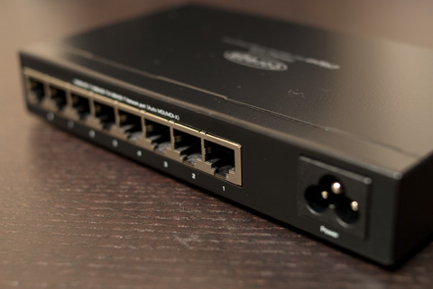 RJ45のポートが8つと、その隣に電源の接続部があります。