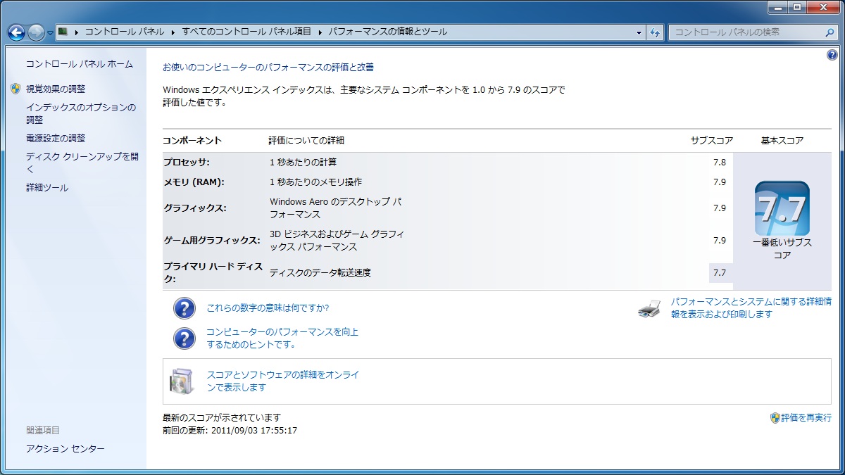 とりあえずエクスペリエンスインデックスのスコアですが、画像1がGTX560Tiで2がHD5870です。