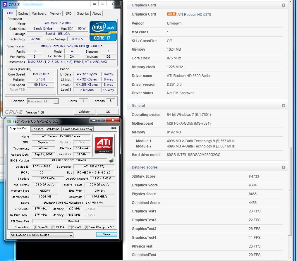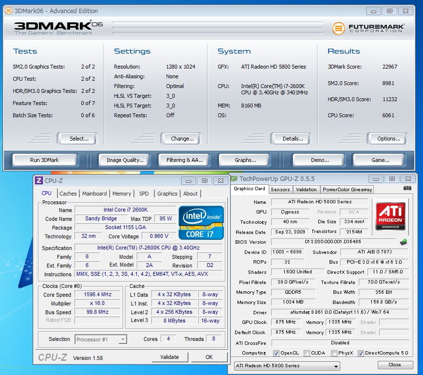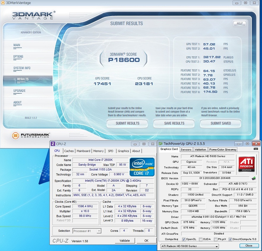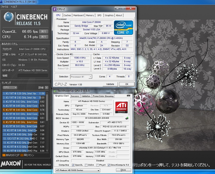 簡単にベンチマーク廻してみましたが、現在使用中のHD5870と遜色ないというか、少し高めの数値になりますね。