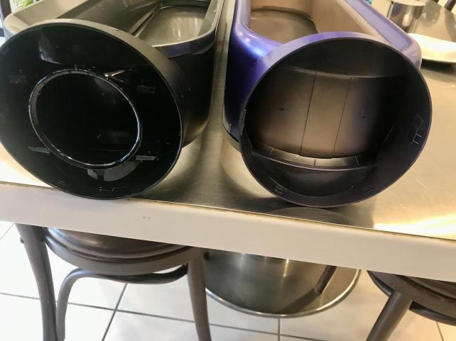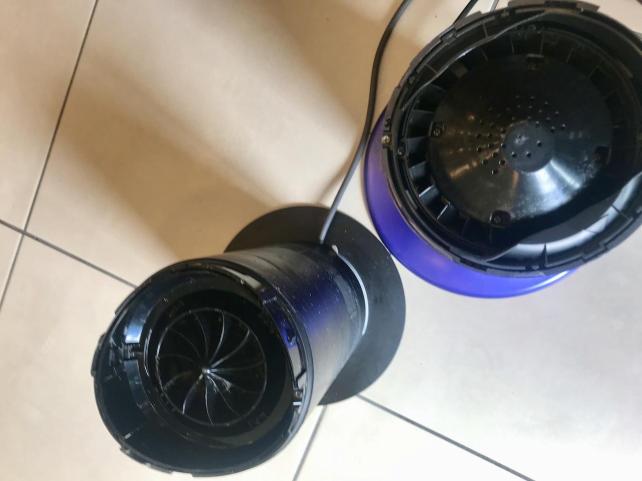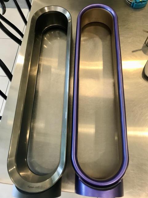 左が本物のダイソン 右が当該製品 ファンカバーの構造が全く違うことがわかりますね