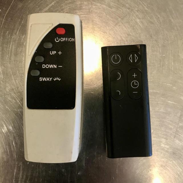 右はダイソンのリモコン ダイソンにあって当該製品に無いのはタイマー機能