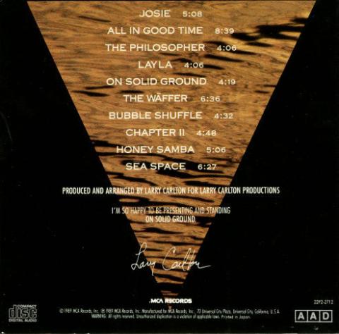 "ON SOLID GROUND"。スーパーギタリストLarry Carltonの1989年の作品。“堅い大地の上に”、こう題されたこのアルバムは彼の復帰作でもある。このアルバム制作初期に彼は生死の縁をさまよっている。前年の1988年に暴漢に銃撃され、瀕死の重傷を負った。頚部を撃たれ声帯は損傷し、ギタリストにとって致命的なことに左手が動かなくなってしまった。精神的ダメージも大きく、再起が危ぶまれたが、本人の努力で復帰した。その最初のメッセージが当アルバムだ。