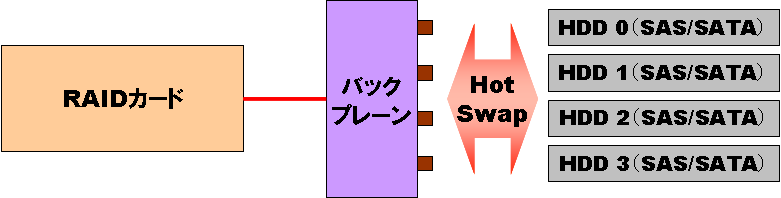 通常、SAS対応のサーバでは、ホットスワップに対応させます。