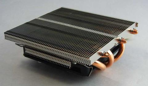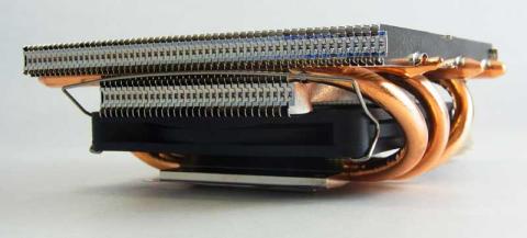 3本のヒートパイプでCPUから上部のヒートシンクに熱を移す構造は普通だが、そのCPUとヒートシンクの間に薄型のファンを埋め込むという他に見ない配置。これによりヒートパイプ式としては破格の薄さ…全高40mmを実現している。