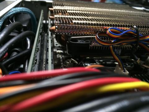 ヒートパイプの向きを優先してこの向きにしましたが、背の高いメモリでは干渉してしまうでしょう。