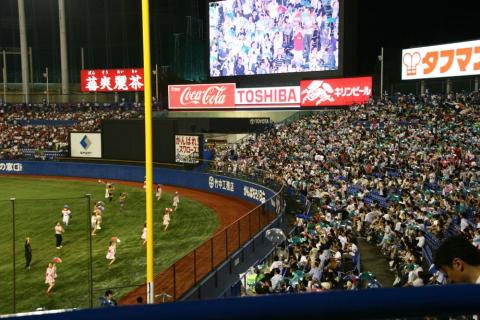 そして、2回の裏にヤクルトが1点先制するとヤクルト名物の傘をフリフリ東京音頭をみんなで合唱が始まりました。