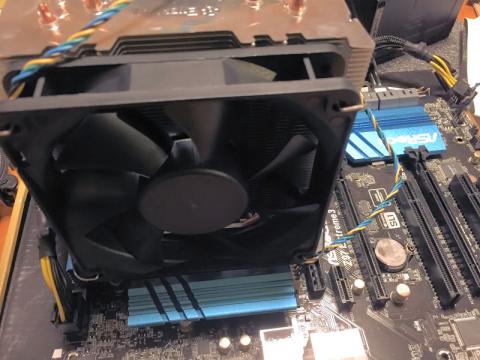 今回はヒートシンクに刻印されている矢印通りの風向きとなるように取り付けました。
